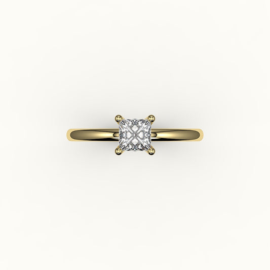 Engaste de anillo solitario de corte princesa con riel de soporte