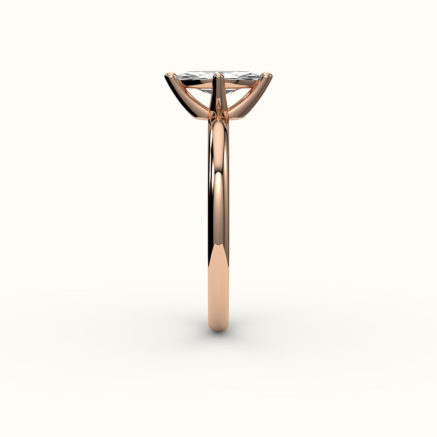 Fabricado en oro amarillo, blanco o rosa de 14 k, este anillo combina mejor con una alianza curva, haciendo eco del arco natural de la propia marquesa.