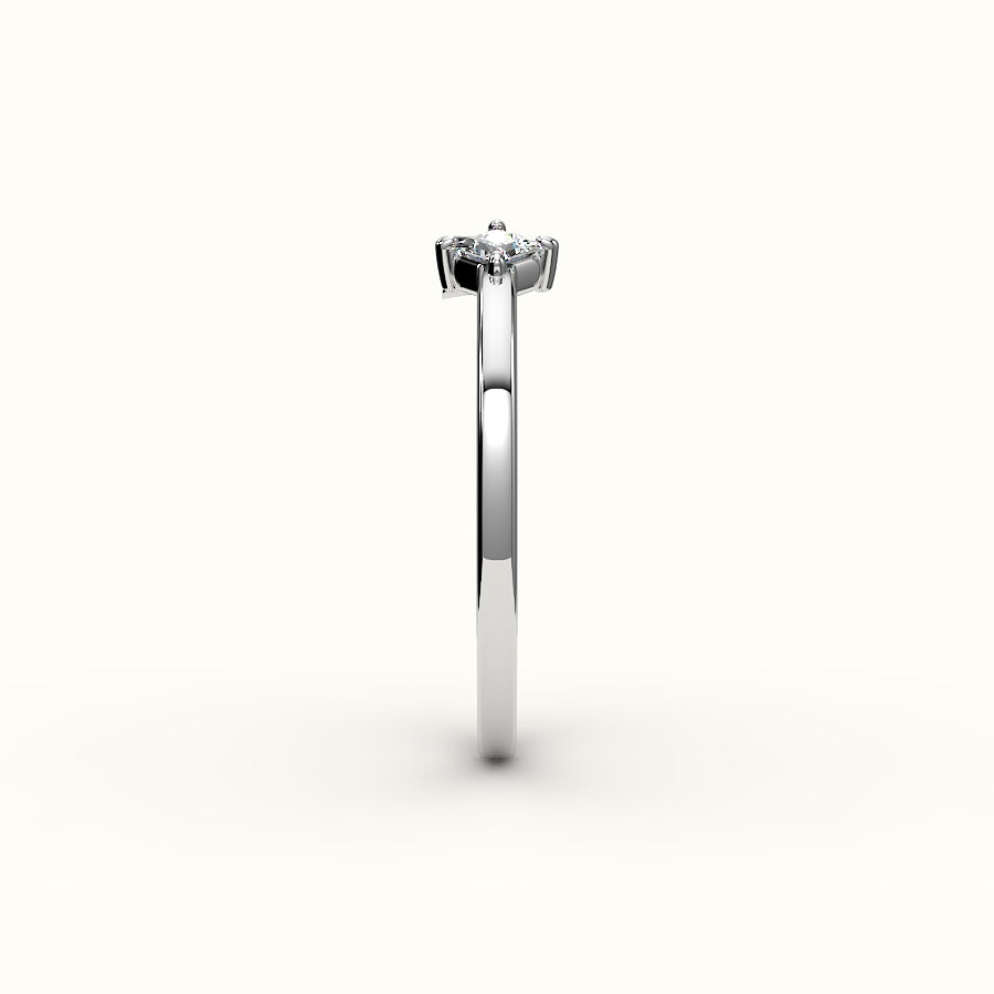 Anillo de diamantes y inicial de corte princesa con brújula