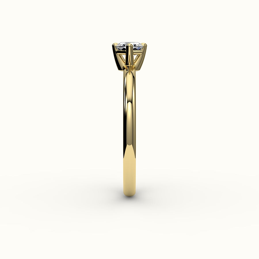 Este engaste solitario Este-Oeste gira el corte hexagonal hacia un lado, ofreciendo una impactante reinterpretación de la simetría. Es audaz, moderno y se atreve a recorrer caminos menos transitados.