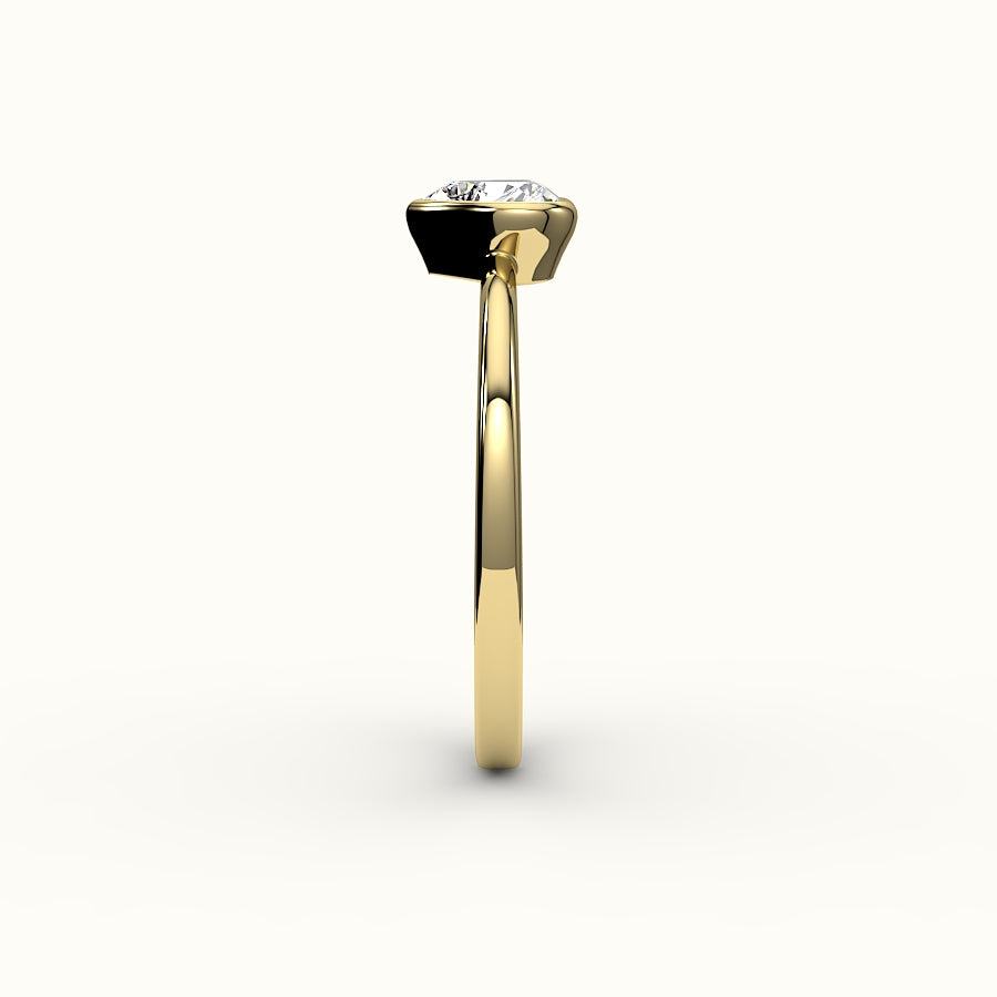 Un corazón, sellado en oro. Este engaste de bisel protege las curvas y la punta de la piedra elegida, convirtiendo el sentimiento en fuerza.