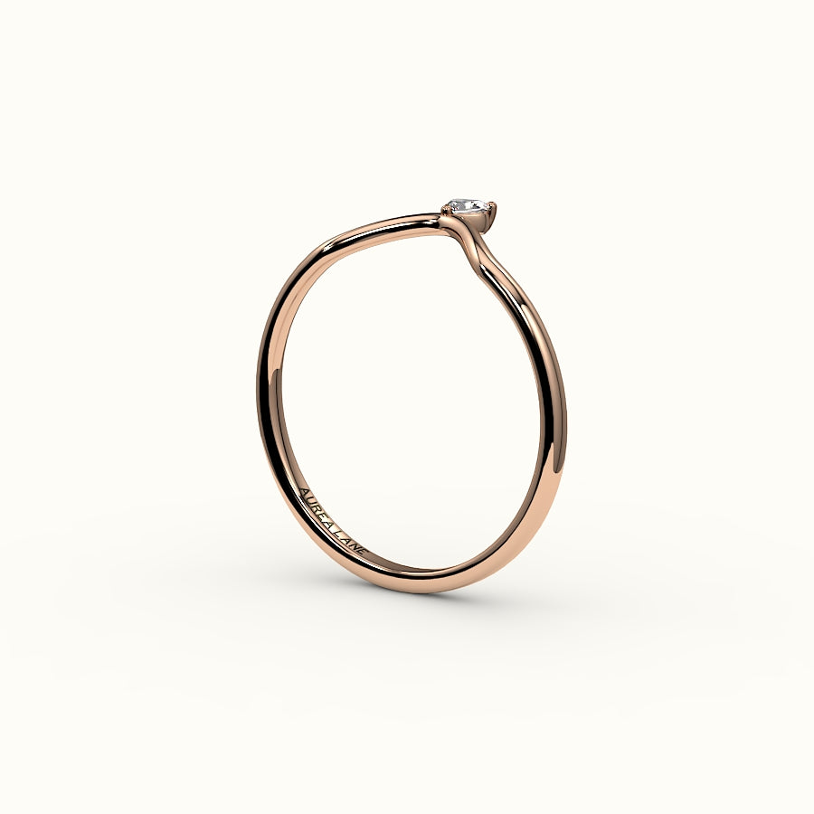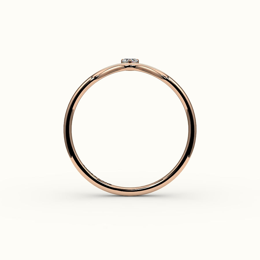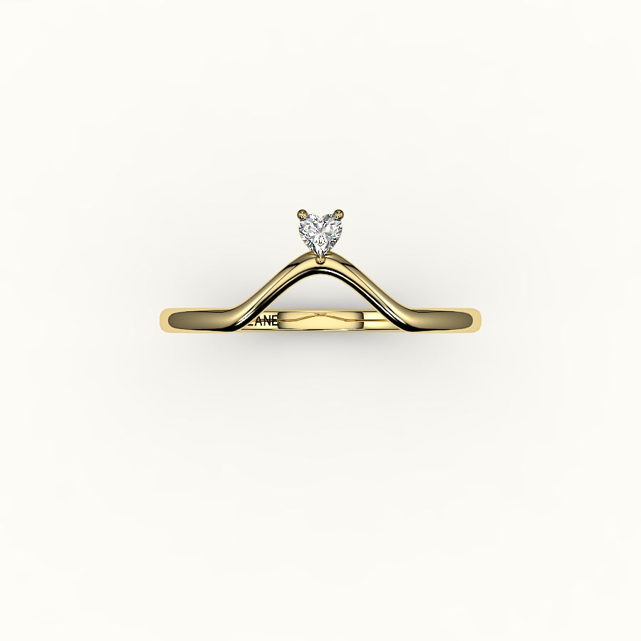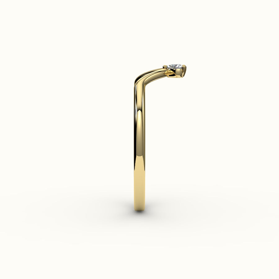 Un delicado arco de luz: esta alianza en forma de V luce un único diamante en su punta, diseñado para contornear la silueta de tu piedra central con precisión poética. Aporta una suave curva y un brillo sutil a tu conjunto, como un susurro de promesa envuelto en oro. Elaborada en oro macizo de 14 quilates, en amarillo, blanco o rosa, esta alianza se ajusta cómodamente y con elegancia.