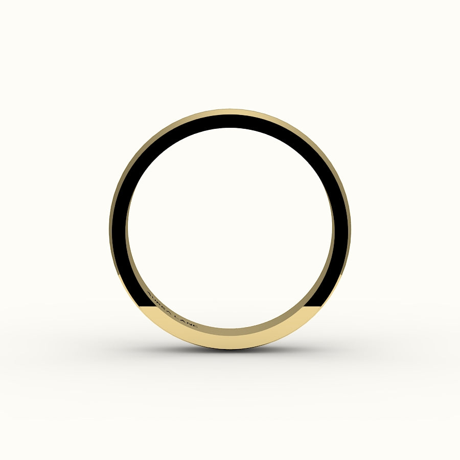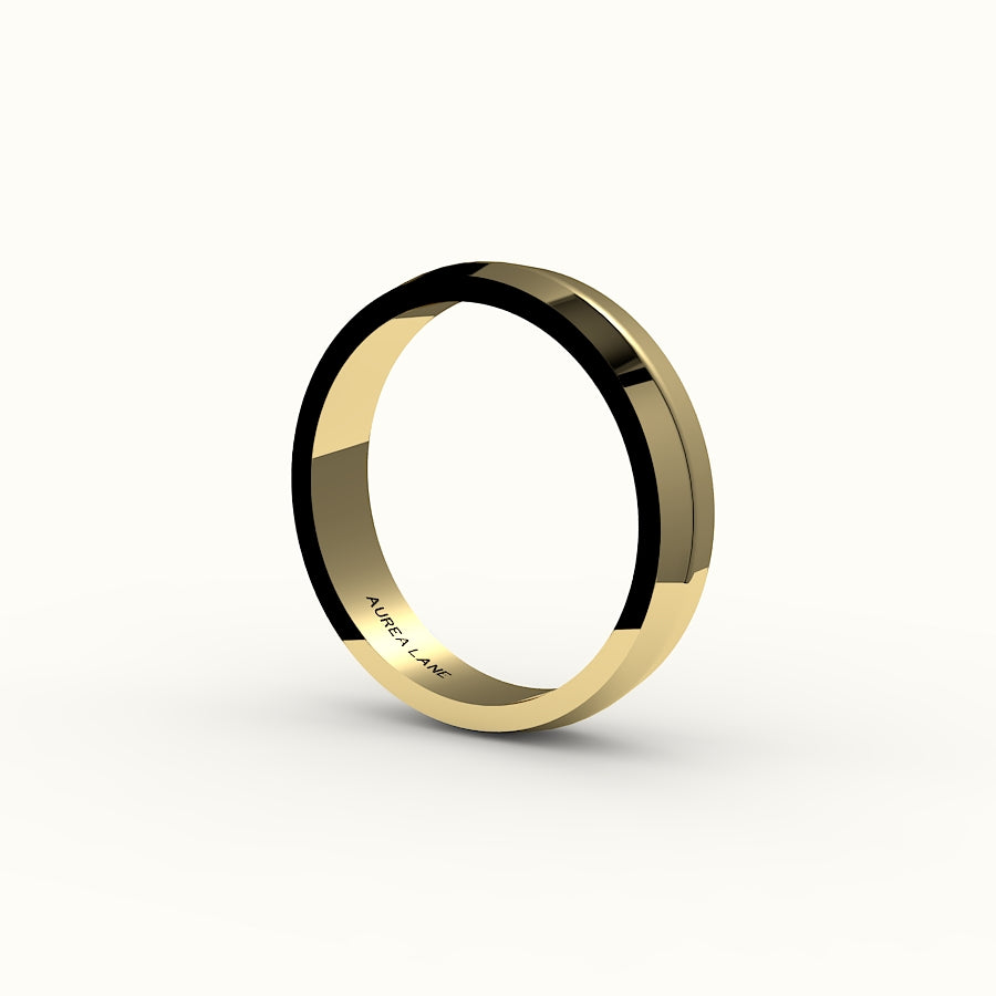 Ángulos audaces. Poder elegante. Esta banda de cuchillo de 4 mm rompe con lo convencional gracias a su reborde escultural y su pulido impecable. Una interpretación moderna de la elegancia, diseñada para quienes se mueven por el mundo con una fuerza serena. Su impactante silueta la convierte en una alianza robusta para quienes buscan un diseño vanguardista. Forjada en oro macizo de 14k.