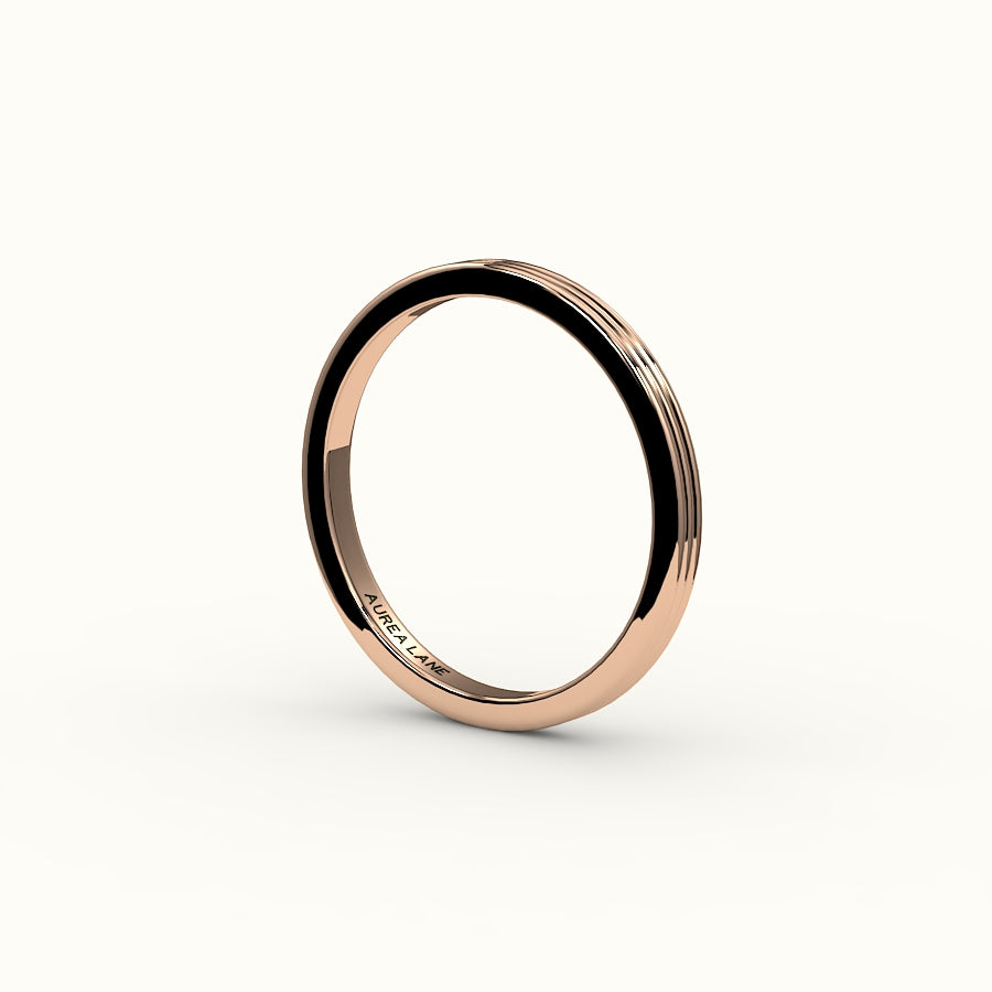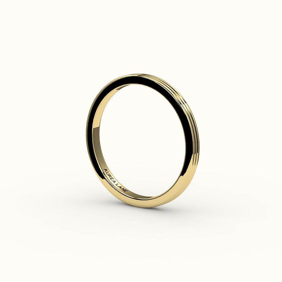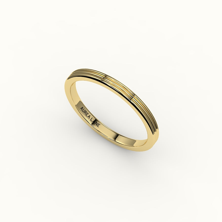 Textura discreta. Delgada y sutil, la banda de ranuras paralelas de 2 mm luce dos ranuras a lo largo de su cara: dos líneas discretas que aportan profundidad sin distraer. Es ligera, táctil y muy llevable. Una alternativa refinada y moderna a las alianzas de boda tradicionales. Fabricada en oro macizo de 14k.